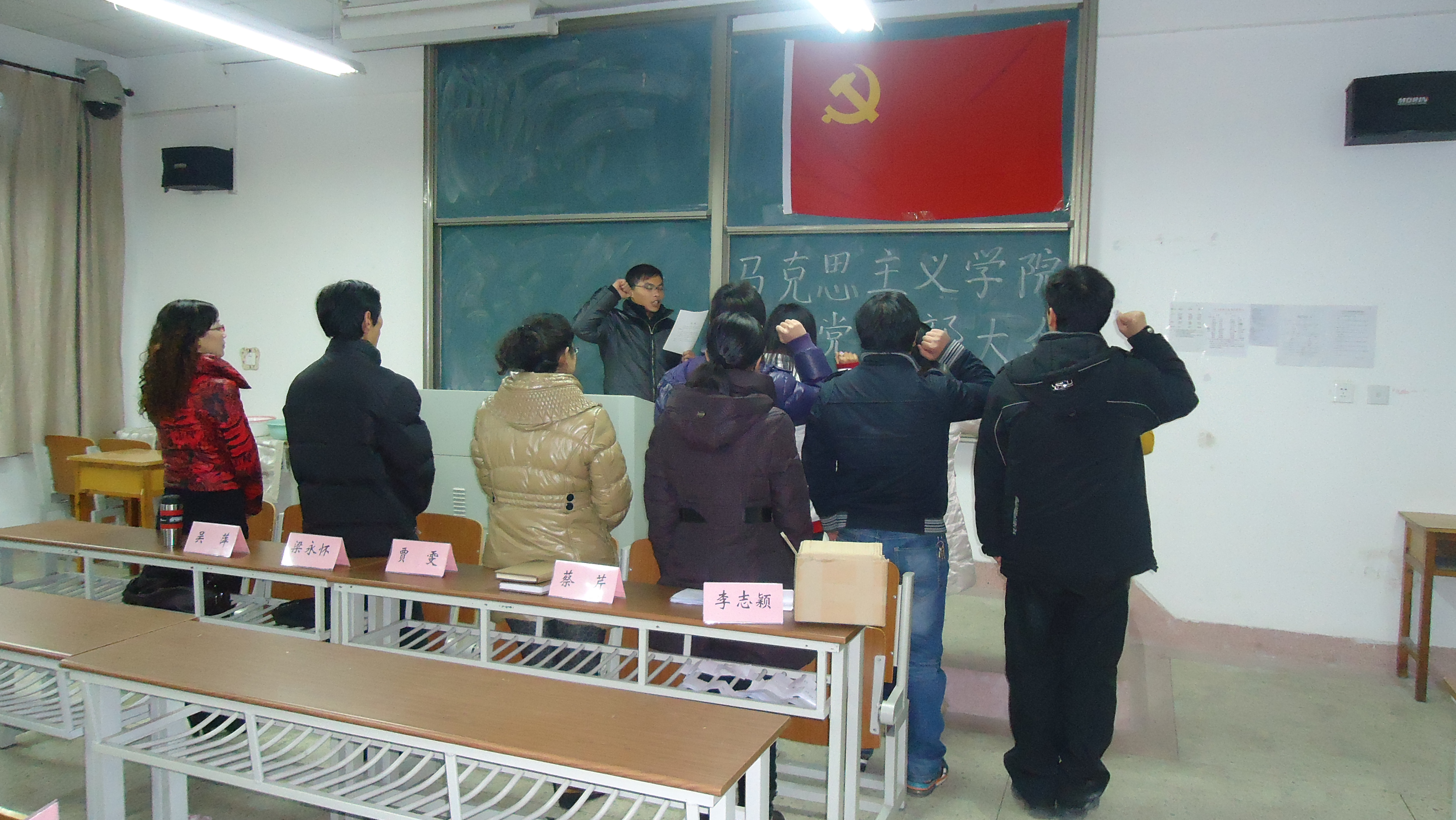 接下来轮到即将成为预备党员的六位同学展现的时刻,和以往一样,他们轮流到台前做着自我简介,讲述着自己在发展党员方面的阶段受到组织的培养,自身所存在的不足,坚信自己一定会为成为一名合格的共产党员而努力奋斗,大家也为他们的决心而毫不吝惜自己的双手。接下来到了大会最为庄严的时刻,那便是预备党员的入党宣誓,顿时全场起立,在鲜红的党旗下,他们举起自己的右手,向着庄严的党旗郑重宣誓:“我志愿加入中国共产党......”在场的每一个人都能感受着炽热的心跳,当他们呐喊出宣誓人名字的时候,全场响起了最为热烈的掌声。
