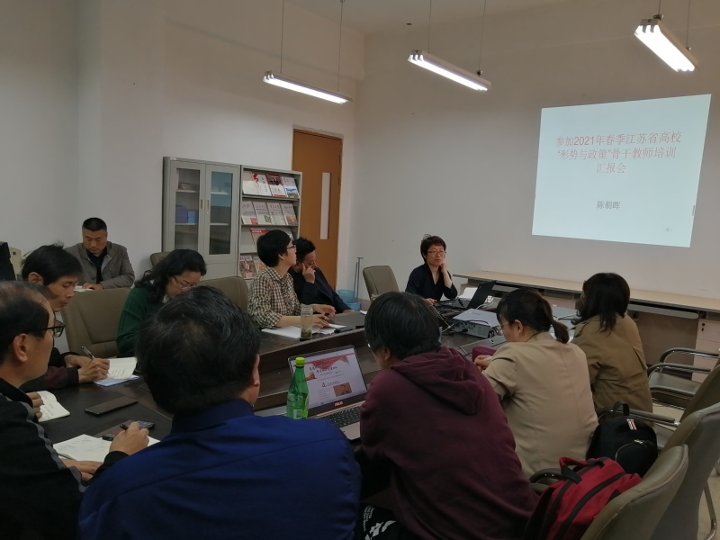 5月8日下午,参加省教育厅主办的2021年春季省高校“形势与政策”课骨干教师培训的陈朝晖老师,在熊猫体育会议室作了专题汇报。全体思政理论课教师参加会议。