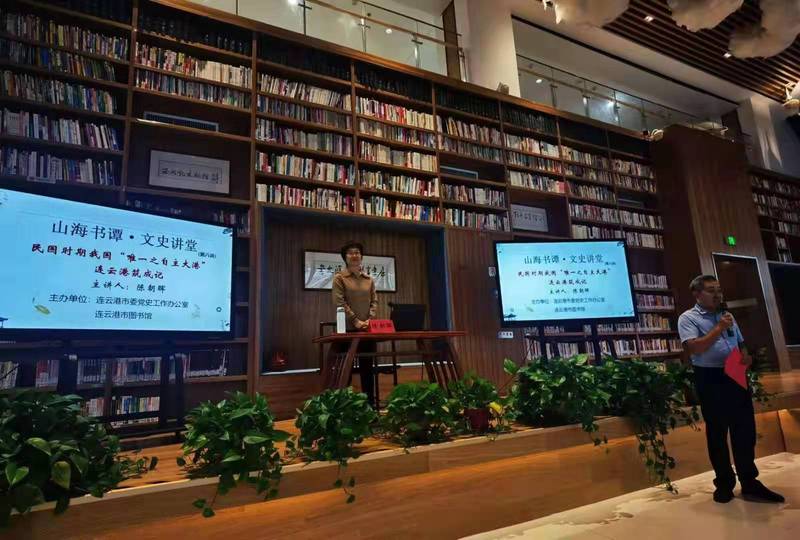 为庆祝伟大祖国72周年华诞,连云港市委党史工作办公室与连云港市图书馆共同举办“山海书谭·文史讲堂”国庆系列讲座,10月7日下午在连云港市图书馆五楼共享书房,熊猫体育陈朝晖老师应邀作专题讲座。活动由市图书馆馆长梁继东主持,全市百余名地方文史专家、学者及爱好者聆听了讲座。