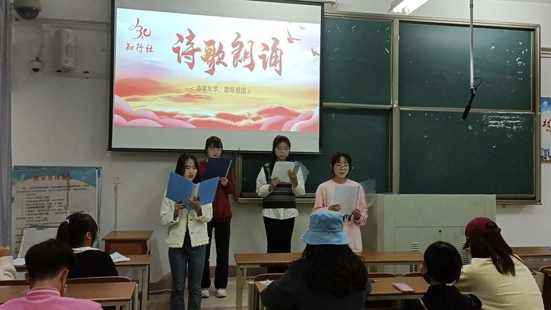 为丰富精神文化生活,提振老员工奋进新征程、建功新时代的昂扬斗志,10月30日,知行社在大同楼B406开展了“诗意年华,歌咏祖国”红色经典诗歌朗诵活动。诗歌朗诵活动在社长何玉存和部长团的组织下拉开了帷幕。
