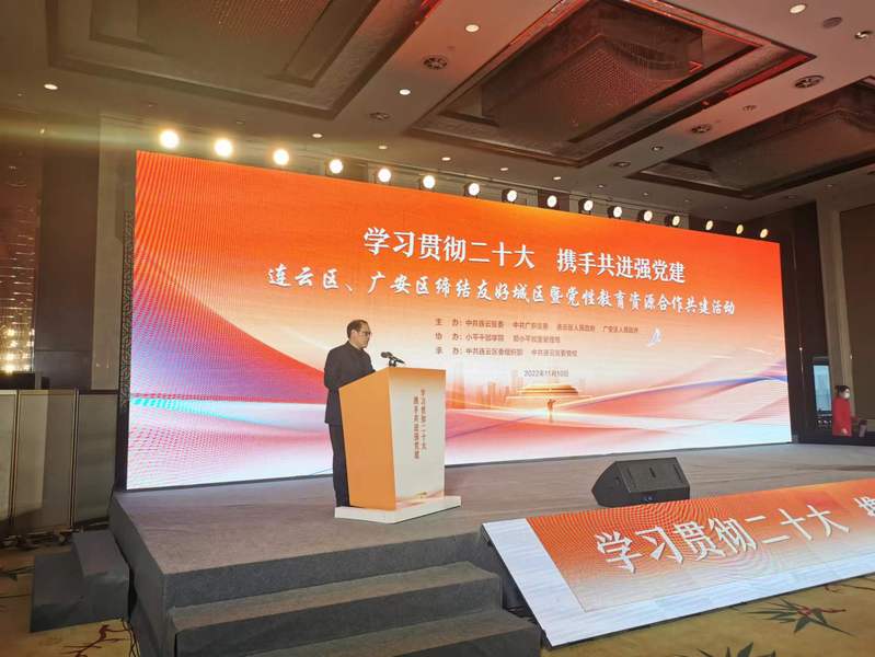11月10日,熊猫体育孙召路教授应中共连云区委邀请出席“学习贯彻二十大 携手共进强党建”专题研讨会并发表主题演讲。会议在市海州湾会议中心举办,来自市委办、市社科联、市委党史办、市委党校以及四川省广安市的相关领导100余人参加了研讨会。连云区区委副书记、区长李占超主持会议。