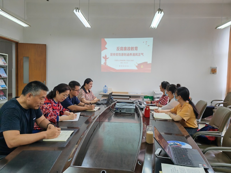 教师第一党支部的活动以支部书记讲党课和思政课教学座谈会的形式开展。支部书记贺明卫主讲《反腐廉政教育——坚持党性原则 涵养清风正气》专题党课,她从党性原则的历史渊源、党性原则的基本内涵、加强党性修养是共产党员的终身课题三方面予以阐释。党课之后,支部全体党员围绕思政课教学如何进一步提质增效展开座谈,大家围绕新时代思政课公司产品新形势新要求新使命进行多维思考。