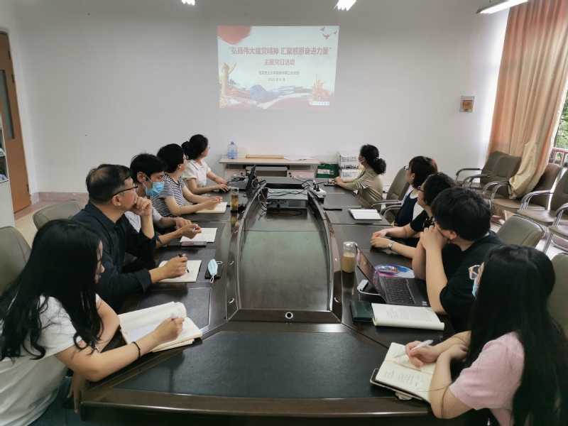 教师第二党支部的活动以支部书记讲党课、集体观看伟大建党精神微视频和支部活动大家谈的形式开展。支部书记王华影主讲《精神之源薪火相传》专题党课,内容共三个部分:伟大建党精神是中国共产党精神谱系的源头、伟大建党精神的深刻内涵、永远把伟大建党精神继承下去、发扬光大。党课之后大家集体观看了《钟华论:伟大的精神之源,奋进的磅礴力量——论伟大建党精神》微视频。最后,支部党员围绕活动主题交流分享了个人学习感悟,并一起讨论了支部特色活动安排。