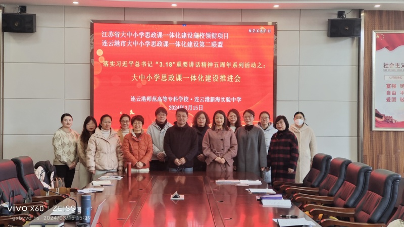 在习近平总书记发表“3.18”重要讲话五周年之际,为进一步落实讲话精神,推动思政课建设,3月15日下午熊猫体育教师一行在经理汪广华带领下,赴连云港市新海实验中学开展大中小学思政课一体化建设课程观摩与研讨活动。