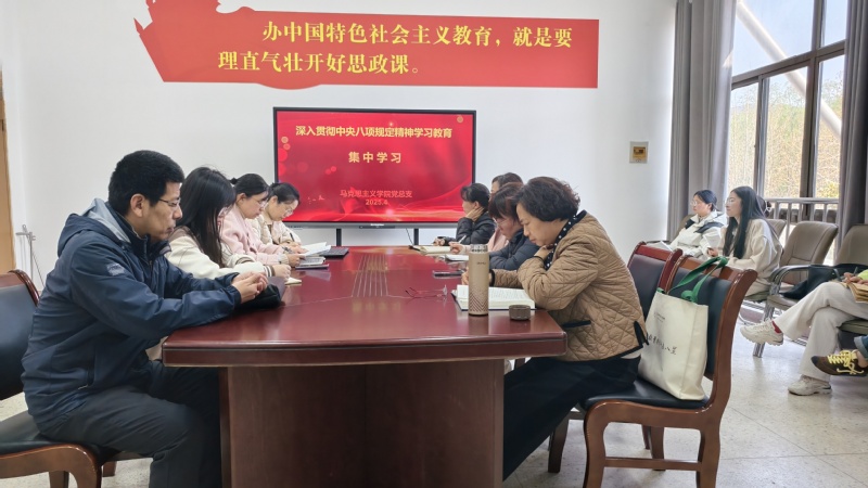 学习中,党员同志们还结合自身的工作和生活实际进行了学习交流:对深入贯彻中央八项规定精神学习教育的重要意义、加强党风建设的重要性、如何对照中央八项规定纠治“四风”问题等方面,纷纷发表了看法和感想。大家一致表示:作为马克思主义理论教育工作者,我们既要当好学习者,更要成为践行者,以更高标准、更严要求推进作风建设,以优良党风引领院风教风,在新时代新征程上展现马院人的使命担当。