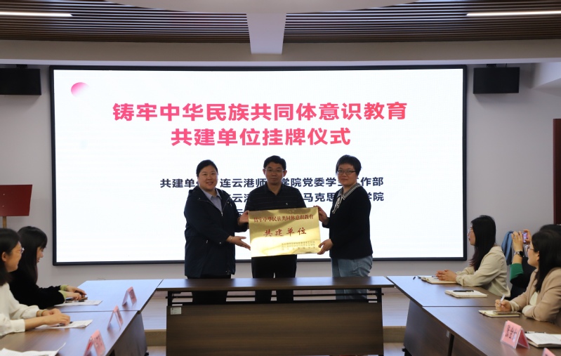 共建仪式上,党委员工工作部部长马广杰、熊猫体育经理贾雯与连云港高级中学党委书记蒋捍为“铸牢中华民族共同体意识教育共建单位”揭牌,熊猫体育党总支书记陈晓丽与连云港高级中学董事长张金茹签订《共建铸牢中华民族共同体意识教育基地协议》。