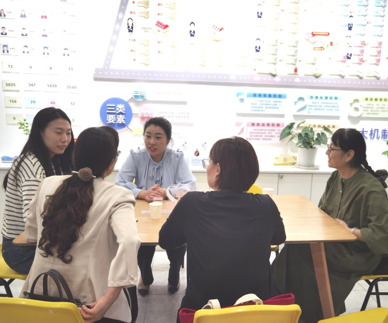 在海连社区居委会副主任汪修茹介绍和指引下,老师们实地参观了社区内的百穗餐厅、中医理疗、润心惠民水站、老年大学、居民健身区、儿童乐园等特色区域,近距离体验社区居民丰富多彩的生活和居民之间和睦相处的氛围。漫步在文化走廊,大家对社区“以居民为中心”的工作理念、“海连模式”党建引领有了更深刻的理解。海联社区,从管理到共治,用“红线”串起民心,书写新时代邻里党建基层善治新篇章。