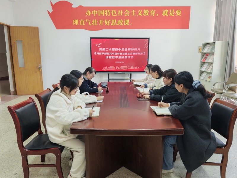 为深入学习宣传贯彻党的二十届四中全会精神,推动党的创新理论及时融入思政课堂,11月12日下午,教研室召开党的二十届四中全会精神融入课程教学集体备课会,会议由教研室主任吴萍主持,教研室全体教师参加。